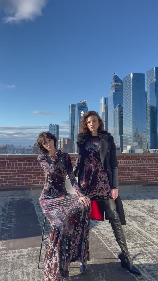 Allure of our Aseel body-con dress, where power shoulders and elongated legs take center stage. Crafted in luxurious devoré velvet, this dress exudes seduction, with partial lining in a slinky silky knit for unparalleled comfort. The rib neck and back zipper closure add a touch of refinement, ensuring a seamless and stylish fit. Elevate your presence with this statement piece that seamlessly blends comfort and chic allure.