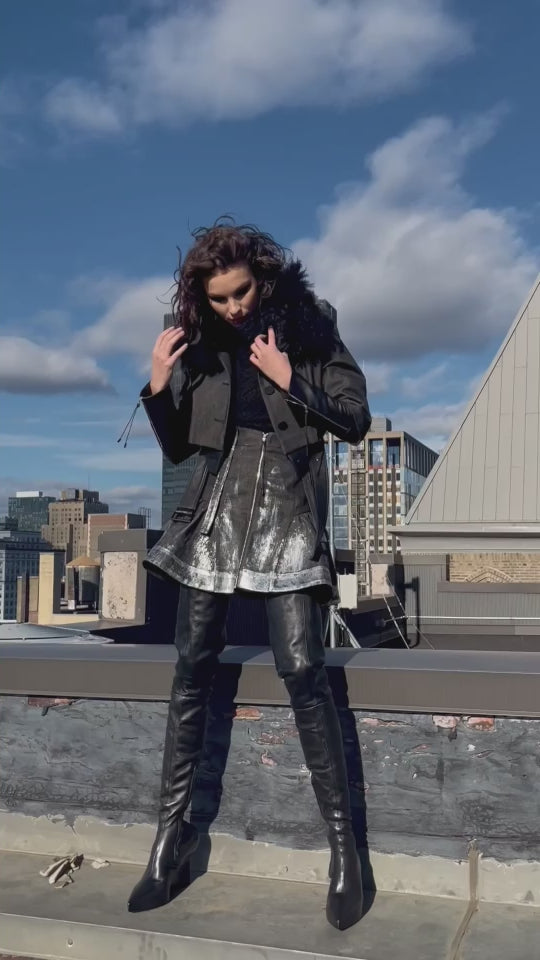 "Whatever Lola wants, Lola gets!" Lola embraces a multitude of personas with this playful silhouette. Elevate the look with high-heeled boots and a corset for a chic look, or opt for a casual vibe with sneakers and a rib crop top. Positioned high on the waist, it gracefully elongates the legs, while the voluminous bottom adds a touch of femininity to the overall shape. Highlighting versatility, this piece also comes with detachable self suspenders for added flair.
